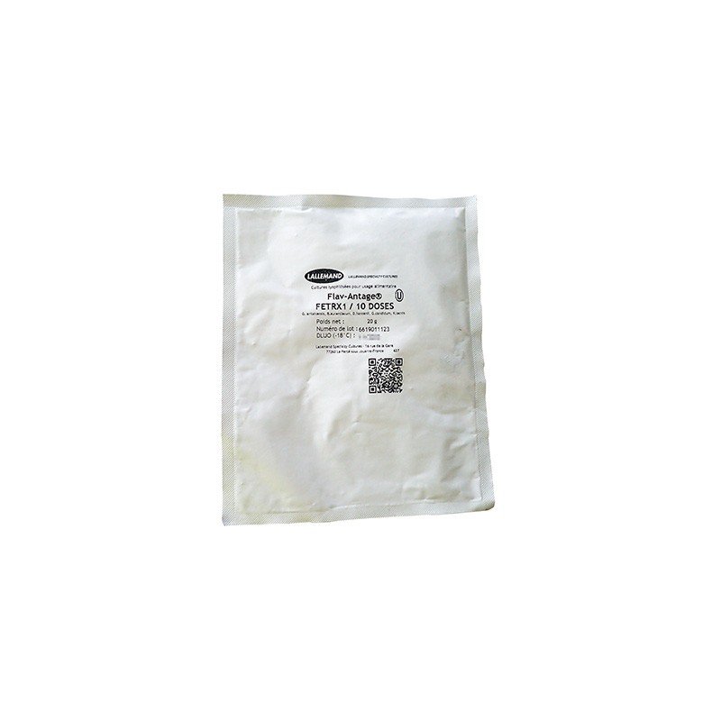 Mezcla de afinado y de aromatización para quesos. FETEX genera un aumento gradual de pH y cubrir los quesos con un ligero corteza. Para quesos de masa blanda con corteza florida, masa blanda, masa presiona con corteza lavada. Dosis recomendada: 2-6 dosis por 1 000 litros de leche directamente en la leche antes la adición de cuajo o por pulverización. Paquete de 10 dosis.